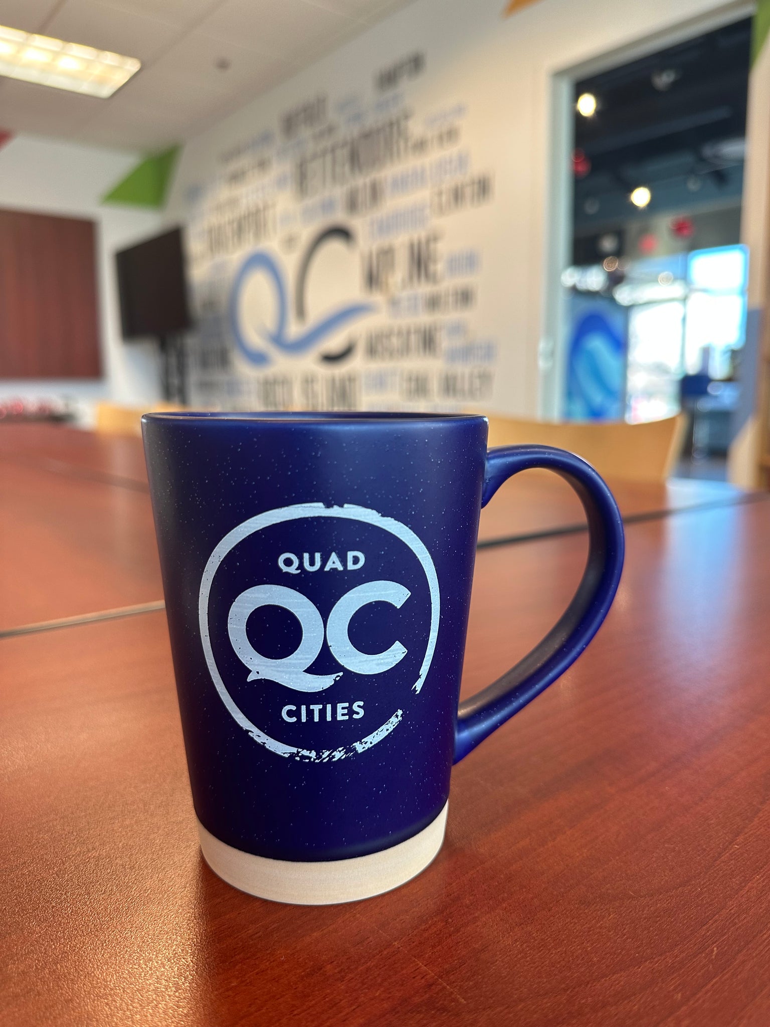 Start your day off right with this 16ou. speckled clay ceramic mug.  This beautiful coffee cup is available in Viking purple with the Quad Cities regional branding shown in white.